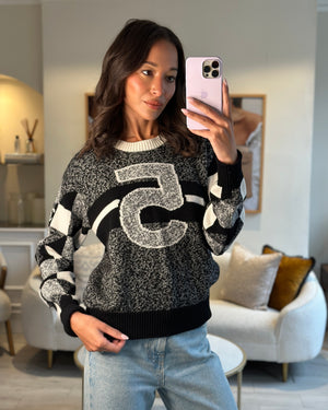 Chanel Black No5 Round Neck Cashmere Jumper with CC Detail Size FR 38 (UK 10)