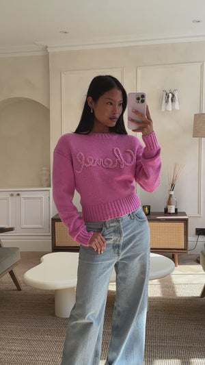 Chanel 20/B Pink Cashmere Jumper with Pearl Logo Detail Size FR 36 (UK 8)