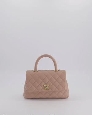 Chanel Beige Caviar Quilted Coco Top Handle with Gold Hardware