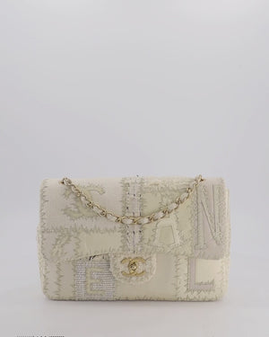 Chanel Cream Tweed and Patent Leather Patchwork Jumbo Single Flap Bag with Brushed Gold Hardware