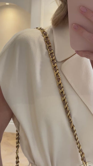 Chanel Mini 19 Flap Bag in Pink, Beige Check Tweed with Gold Hardware and Chunky Gold Chain Handle