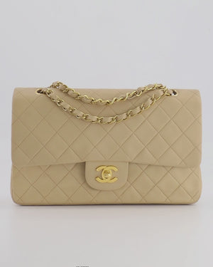 Chanel Vintage Beige Classic Medium Double Flap Bag in Lambskin Leather with 24k Gold Hardware