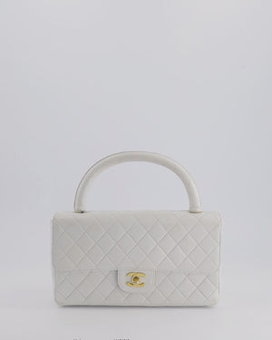 Chanel Vintage White Matelasse Leather Top Handle Bag with 24K Gold Hardware