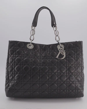 Christian Dior Lady Tote Bag in Black Cannage Lambskin Leather with Silver Hardware