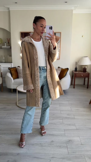 Dennis Basso Beige Persian Lamb Reversible Hooded Pea Coat FR 38 (UK 10)