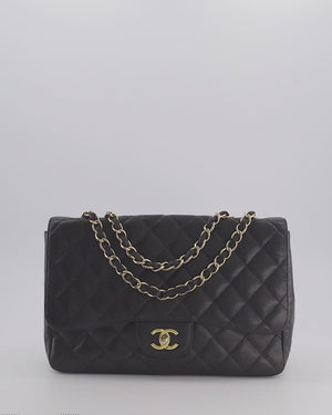 Chanel Black Jumbo Classic Single Flap Bag in Caviar Leather with Gold Hardware