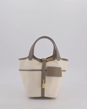 Hermes Picotin 18 Cargo in Ecru Canvas & Etoupe Swift Leather with Gold Hardware