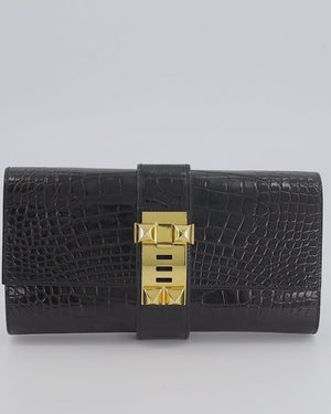 Hermès Pochette Medor 23 in Black Alligator Mississippiensis with Gold Hardware