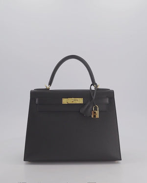*HOT* Hermès Kelly 28 Sellier Bag in Noir Epsom Leather with Gold Hardware