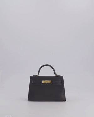 *HOT* Hermès Mini Kelly II 20 Bag In Noir Chèvre Chamkila Leather with Gold Hardware