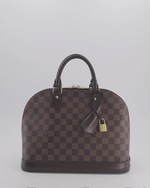 Louis Vuitton Brown Alma MM Bag in Damier Ebene Canvas with Gold Hardware