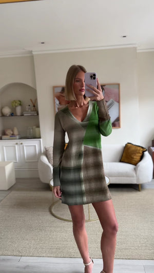 Missoni Grey and Green Metallic Knitted Long-Sleeve Dress Size IT 40 (UK 8)