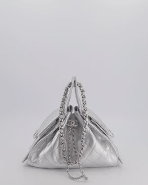 *RARE* Chanel Silver Caviar Leather Small 25 Handbag with Silver Hardware