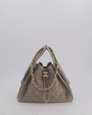 *RARE* Chanel Suede Taupe Small 25 Handbag with Antique Gold Hardware