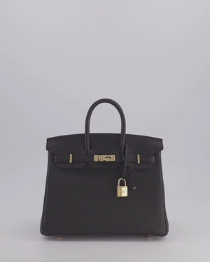 *SUPER RARE* Hermès Birkin 25 Retourne Bag in Noir Togo Leather with Permbrass Hardware
