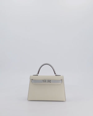 *SUPER RARE* Hermès HSS Mini Kelly II 20 Bag in Craie & Bleu Glacier Epsom Leather with Contrast Stitching and Palladium Hardware