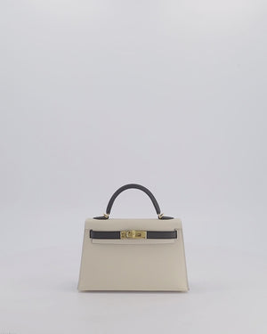 *SUPER RARE* Hermès HSS Mini Kelly II 20 Bag in Craie & Noir Epsom Leather with Tone On Tone Stitching and Gold Hardware