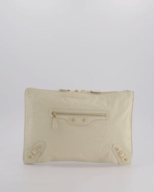 Balenciaga Cream Motocross Metallic Edge Clutch with Gold Hardware