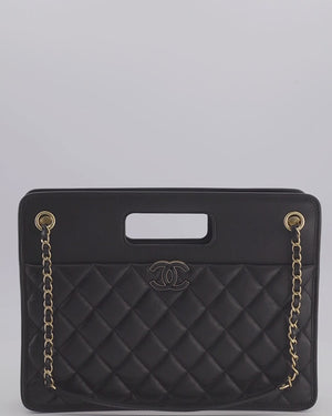 Chanel Black Aged Calfskin Quilted Small Graphic Catch Shopping Bag with Gold Hardware