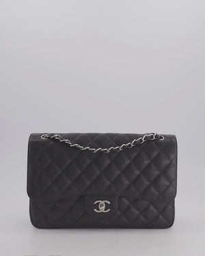 Chanel Black Jumbo Classic Double Flap Bag in Caviar Leather with Silver Hardware
