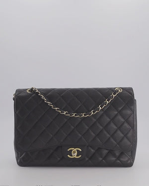 Chanel Black Maxi Classic Double Flap Bag in Caviar Leather with Gold Hardware