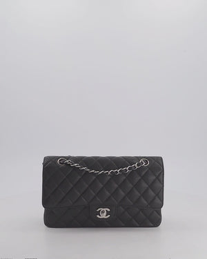 Chanel Black Medium Classic Double Flap Bag in Caviar Leather with Silver Hardware