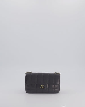 Chanel Black Vintage Mini Chocolate Bar Flap Bag In Lambskin Leather with Gold Hardware