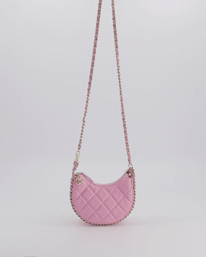Chanel Bright Pink Small Half Moon Hobo Bag with Champagne Gold Chain All Around Detail