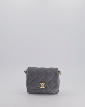 Chanel Dark Metallic Silver Small Flap Bag in Lambskin Leather with Gold Hardware and Chanel Charm Chain