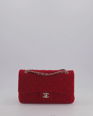 Chanel Deep Red Classic Medium Double Flap Bag in Tweed with Champagne Gold Hardware