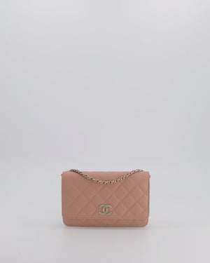Chanel Peach Wallet on Chain Bag in Caviar Leather with Champagne Gold Hardware and Cage Detail Logo