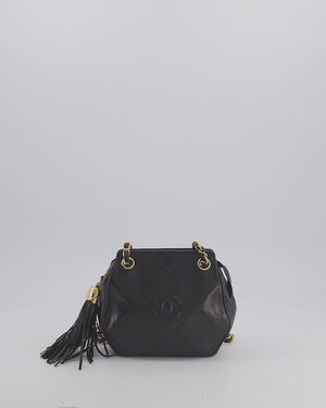 *FIRE PRICE* Chanel Vintage Black Small Camera Bag in Lambskin Leather with Tassel Detail and Gold Hardware
