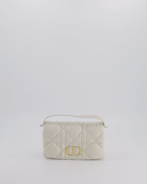 Christian Dior White Caro Macrocannage Calfskin Leather Flap Bag With Gold Hardware