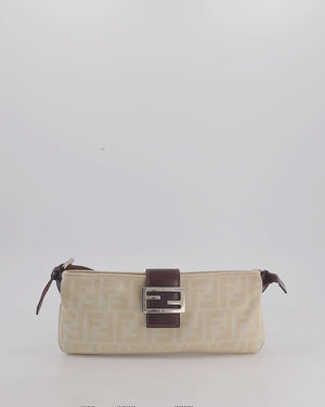 Fendi Vintage Cream Zucca Canvas Baguette Bag with Silver Hardware