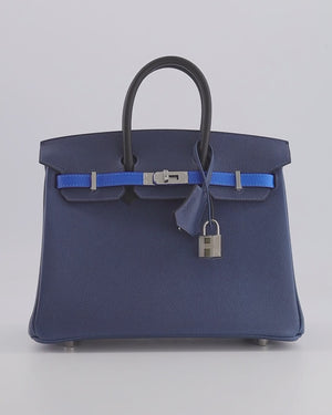 Hermès Birkin 25 Retourne Bag in Tricolour Deep Blue, Bleu Hydra and Black Epsom Leather with Palladium Hardware