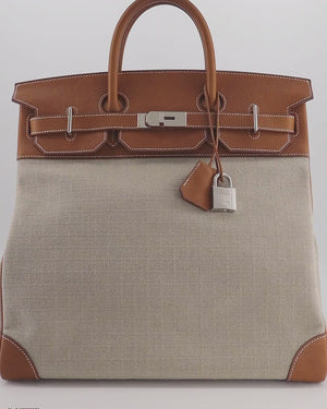 Hermès Haut à Courroies HAC 40 Bag in Fauve Barenia Faubourg Leather & Naturel Toile Canvas with Palladium Hardware