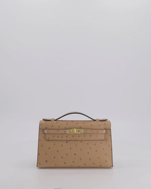 *RARE & HOT COLOUR* Hermès Mini Kelly Pochette Bag in Chai Ostrich Leather with Gold Hardware