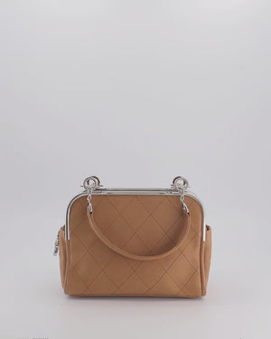 *HOT* Chanel Vintage Camel Brown Soft Frame Bag In Lambskin Leather with Silver Hardware