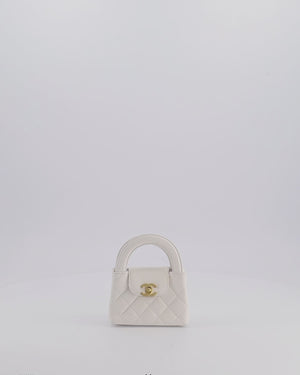 *RARE* Chanel White Nano Kelly Shopping Bag in Aged Calfskin Leather with Brushed Antique Gold Hardware