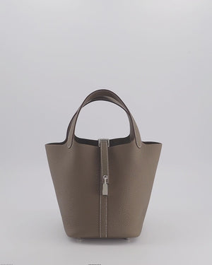 *RARE* Hermès Picotin Lock Bag 18cm in Etoupe Clemence Leather with Palladium Hardware