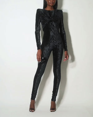 Saint Laurent Navy T2 Velvet Long Sleeve Jumpsuit with Tie Detail FR 34 (UK 6)