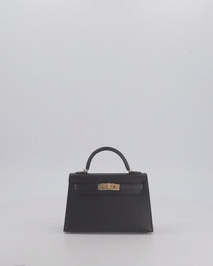 *SUPER RARE* Hermès HSS Mini Kelly II 20 Verso Bag in Noir Epsom Leather with Gold Interior and Rose Gold Hardware