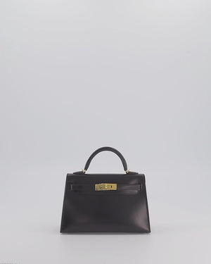 *SUPER RARE* Hermès Mini Kelly II 20 Bag in Noir Box Leather with Gold Hardware