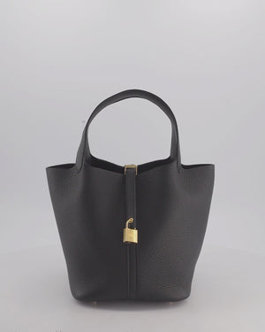 *VERY RARE* Hermès Picotin Lock 22 Bag in Noir Clemence Leather with Gold Hardware