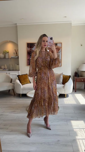 Zimmermann Camel Paisley Dress with Slip Dress Size 0 (UK 8)