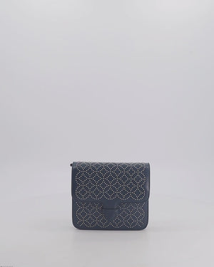 Alaïa Studded Leather Mini Shoulder Bag in Teal Leather with Silver Hardware