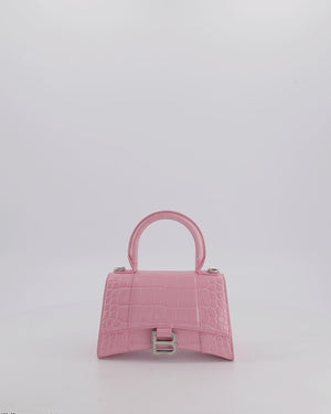 Balenciaga Pink XS Hourglass Top Handle Bag in Croc Effect Calfskin Leather with Silver Hardware RRP £1,850
