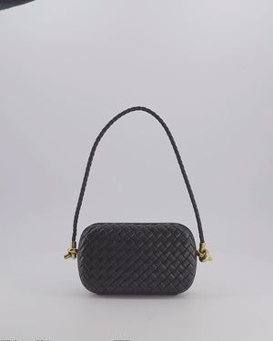 Bottega Veneta Black Knot On Strap Clutch Bag in Black Intrecciato Leather with Gold Hardware