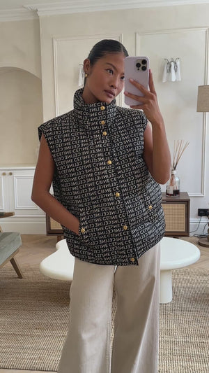 Celine Black and Beige Sleeveless Puffer Jacket with Logo Prints Size XS (UK 6)