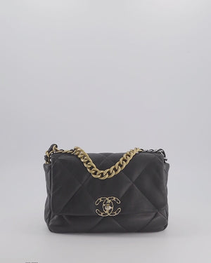 Chanel 19 Black Lambskin Flap Bag with Chain CC Logo and Gold, Silver and Ruthenium Hardware